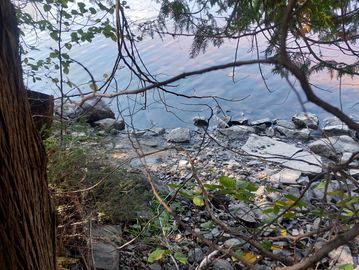 Commentaires : Terrain en pente avec magnifique vue et super bord de l'eau rocheux