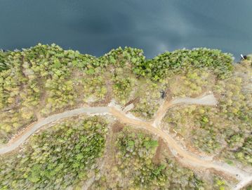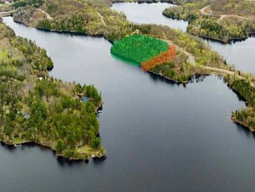 Commentaires : Bord de l'eau, entrée déjà commencé, situé sur une grande presqu'île, terrain en pente en dessous d'une ligne de transénergie, possibilité de bâtir 30x30 ou moins